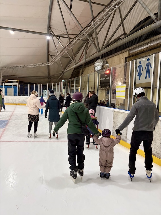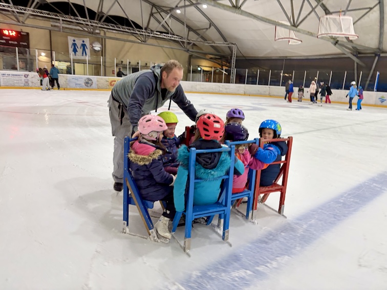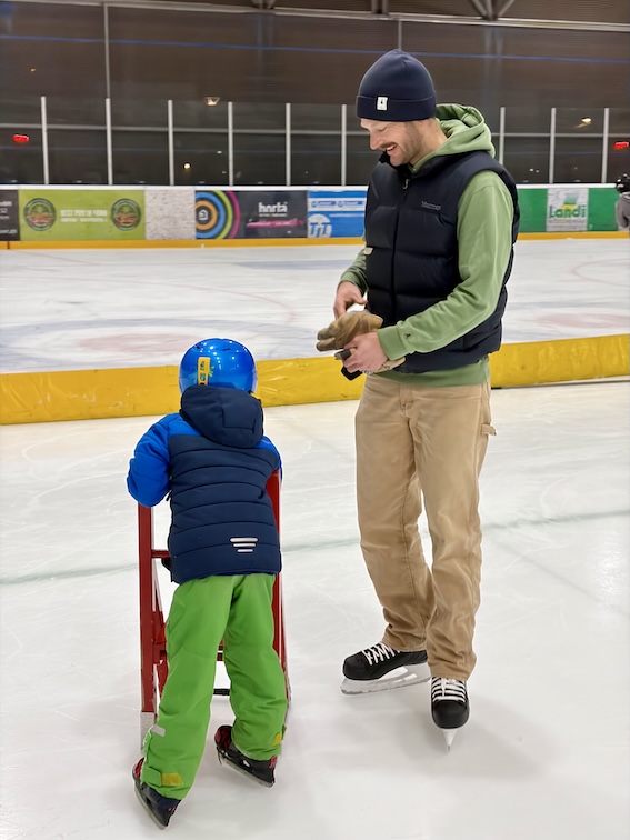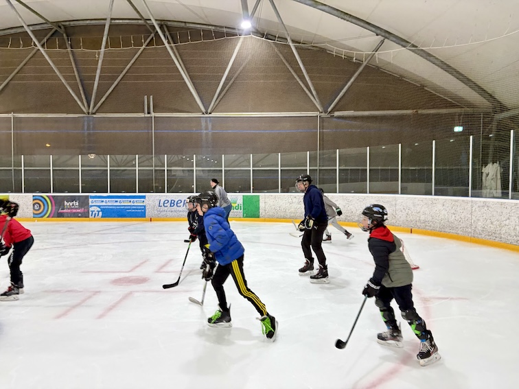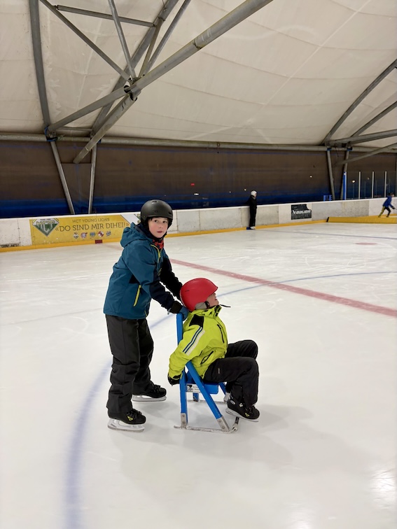 Bei winterlicher Kulisse und bester Stimmung erinnerte das Bild auf dem Eis fast an das öffentliche Eislaufen: Kinder jeden Alters flitzten mit und ohne Laufhilfe über die glatte Fläche, während Eltern mit ihnen geduldig ihre Runden drehten oder die Gelegenheit nutzten, beim gemütlichen Dahingleiten Neuigkeiten auszutauschen. Für manche Kinder glich das Ganze zeitweise einem Besuch im Connyland – einzig die Saltos fehlten (noch).