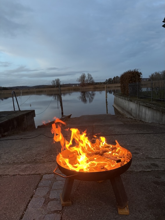 Wieder an Land warteten heisser Punsch, Glühwein und die von Yvonne liebevoll zubereitete Kürbissuppe – perfekt, um sich am Feuer wieder aufzuwärmen.