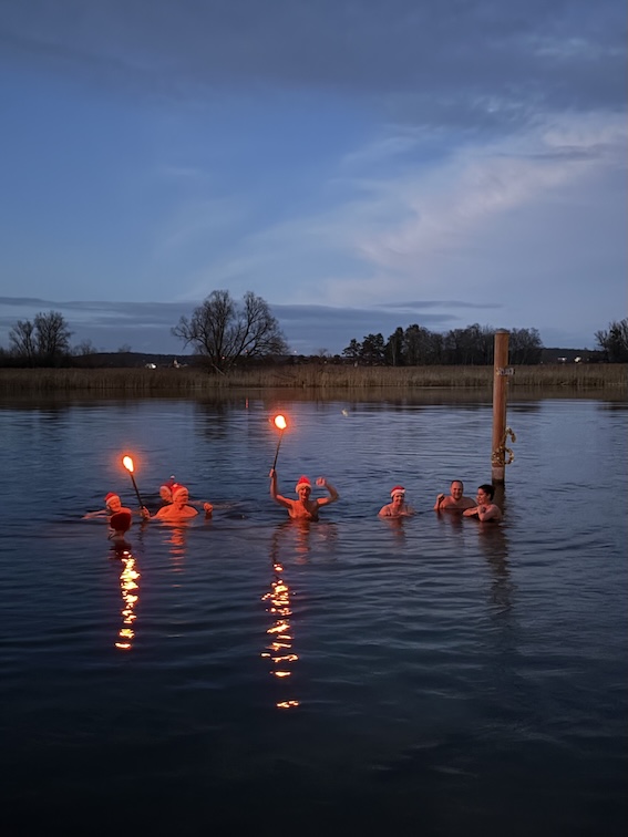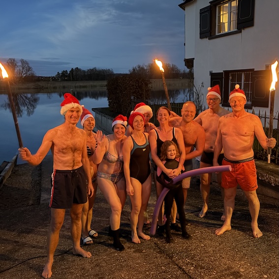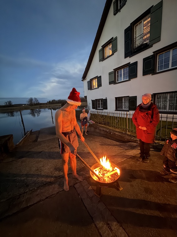 Punkt 17 Uhr war es dann so weit: Die „Eisbaderinnen“ und „Eisbader“ von Gottlieben tauchten auf. Trotz ein paar krankheitsbedingter Ausfälle wagten sich schliesslich über zehn mutige Samichläuse und Samichläusinnen unter respektvollem Applaus der zahlreichen Zuschauer ins kalte Nass.
