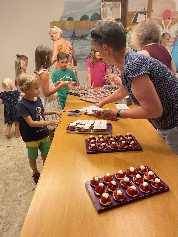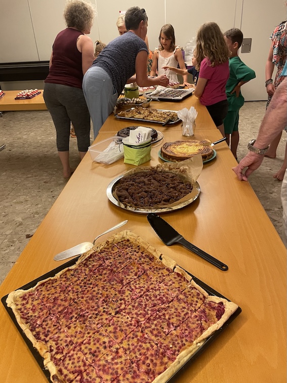 Während sich die Musikerinnen und Musiker danach – wahrlich wohlverdient – an den Würsten vom Grill und dem Bier vom Fass erfreuen konnten, war im Gemeindesaal das äusserst reichhaltige Dessertbuffet eröffnet worden. Nicht nur die Kinder hatten daran ihre helle Freude …